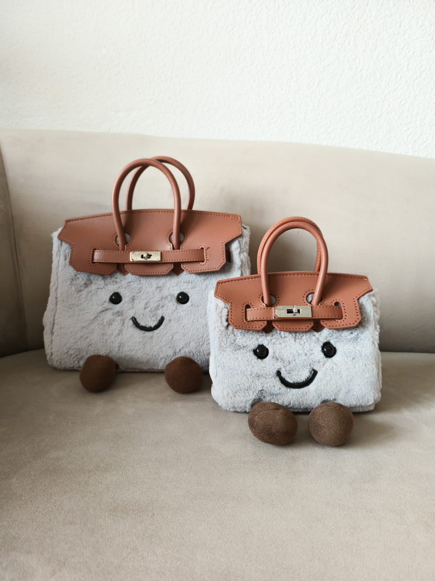 A plush shoulder tote that feels as soft as it looks. Designed with a subtle smiley motif and a roomy shape that fits all your daily essentials — cozy, feminine, and effortlessly stylish.